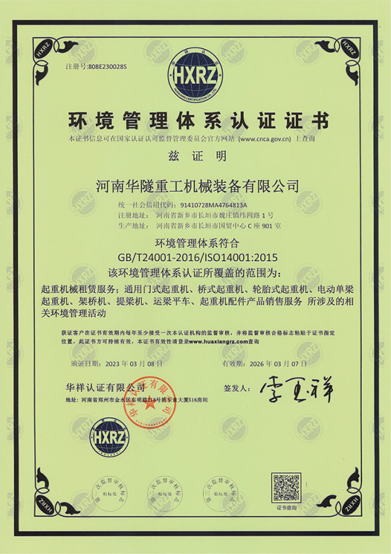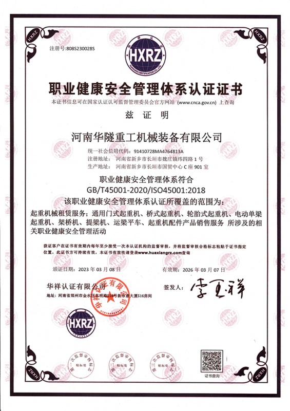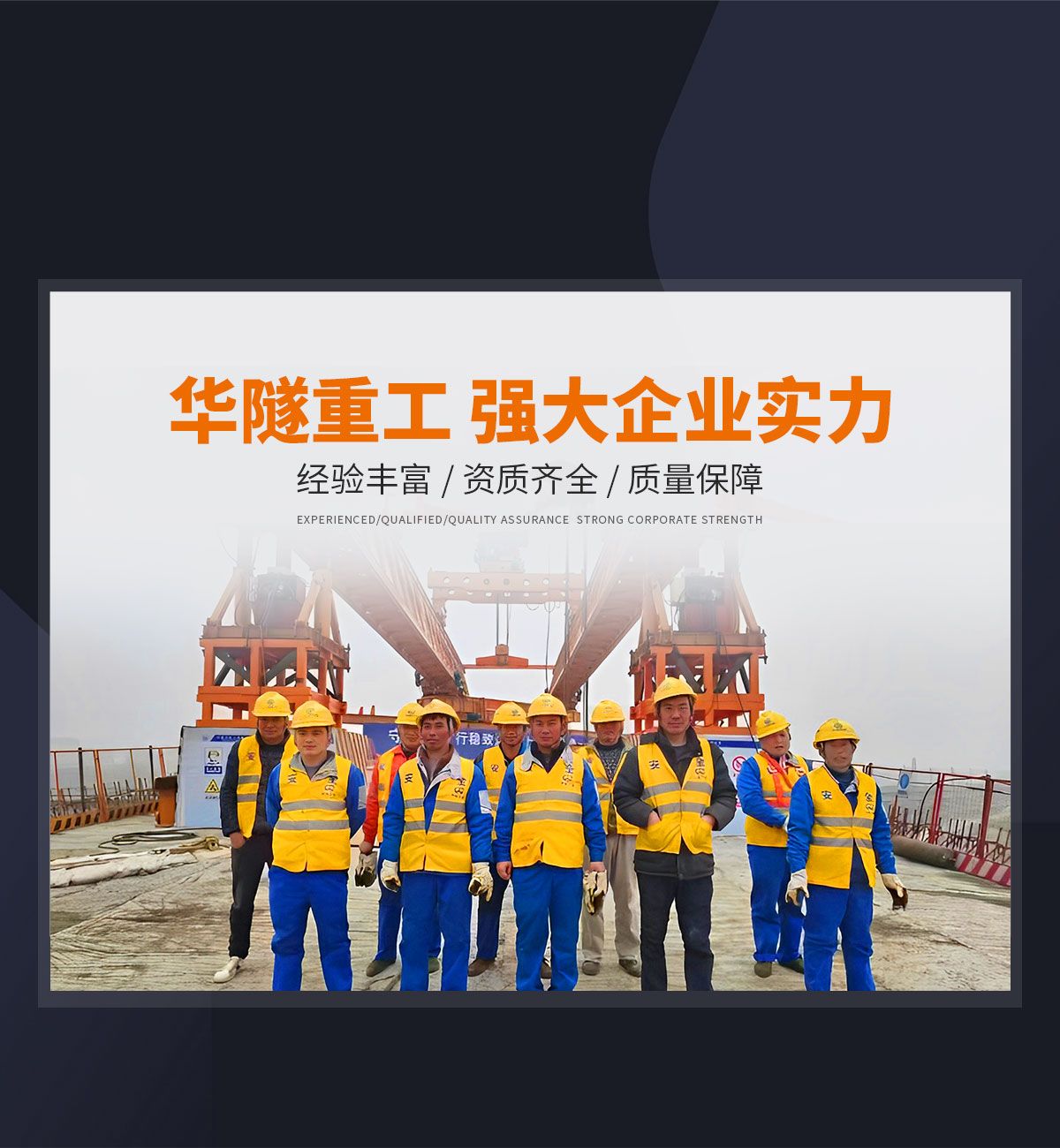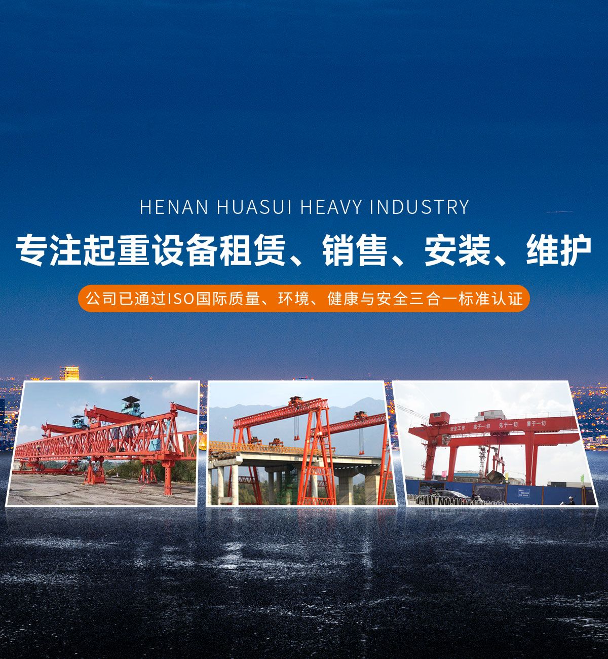 河南華隧重工機械裝備有限公司主要從事通用門式起重機、橋式起重機、電動單梁起重機,輪胎式起重機、架橋機、提梁機、遠梁平車、鋼絲繩電動萌蘆、卷揚機、起重配件制造、銷售:起重機械租賃、安裝和維修,起重設(shè)備園收,機械設(shè)備維修,鋼結(jié)構(gòu)工程承包,橋梁工程及技術(shù)咨淘服務(wù),銷售五金制品、機電設(shè)備:建設(shè)工程監(jiān)理,建設(shè)工程設(shè)計,各類工程建設(shè)活動,建筑勞務(wù)分包,建筑物折除作業(yè),施工作業(yè),工程管理服務(wù),土石方工程施工,裝如發(fā)運。  公司已通過IS0國際質(zhì)量、環(huán)境、健康與安全三合一標(biāo)準認證,特種設(shè)備制造許可證和特種設(shè)備安裝改造維修許可證。擁有完熟的質(zhì)量管理體系。嚴格的管理制度,強大的生產(chǎn)能力和先進的檢測手段,在保證產(chǎn)品質(zhì)量的同時,也具備了極強的市場競爭力。  公司堅持科技創(chuàng)新為理念,產(chǎn)品質(zhì)量為核心,注重信譽,建立了減信可靠、快捷、思速。便利周到的售后服務(wù)網(wǎng)絡(luò)。  我們擁有的技術(shù)專家和技術(shù)服務(wù)隊伍為客戶提供充善的售前技術(shù)支持和全天候的售后服務(wù)體系,讓您無后顧之憂,享受一站式的超值服務(wù)。  “華隧重工,伴您成功“是華隧重工永遠的宗指,真被的希望與各界朋友攜手并進。共創(chuàng)輝準!